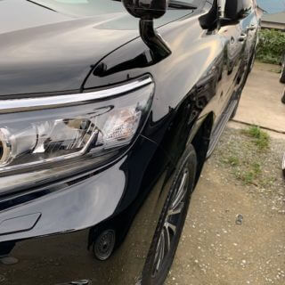 トヨタランクルプラドのフロントフェンダー板金塗装修理とフェンダーミラーの交換依頼が完了です! 綺麗に元通りでピッカピカに仕上げさせ...