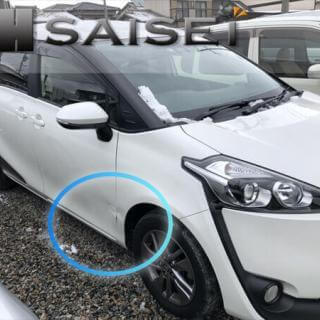 福岡県糸島市のお客様から、トヨタシエンタの板金修理のご依頼を頂きました。 右折の際に駐車場のポールに接触して、スリキズとヘコミが生...