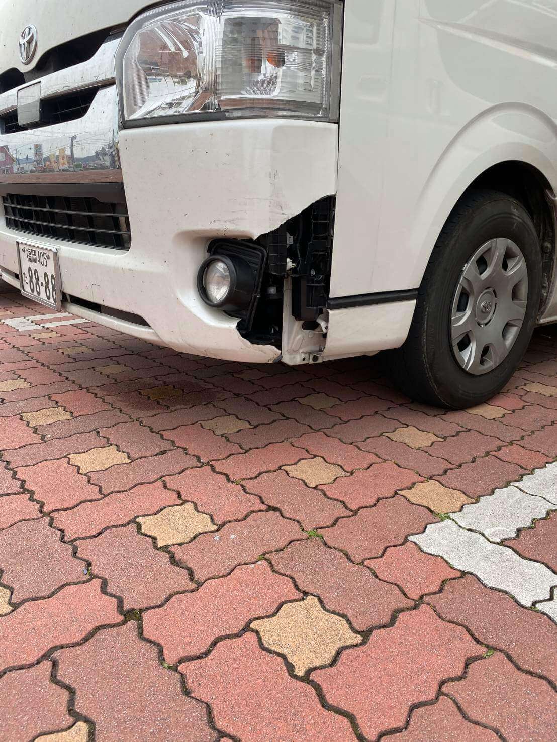 電柱に擦ったそうです.. 綺麗に修復させて頂きます。